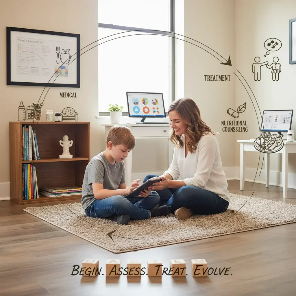 Begin with a comprehensive assessment, which addresses the child's birth, developmental, dietary, medical, psychological, and educational history. Treatment plans may include laboratory testing, medication or supplement management, behavioral therapy, and/or nutritional counseling.